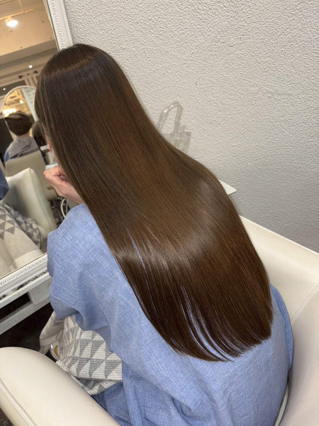 強いクセやうねりがある方は縮毛矯正と同時に行うとよりまとまりやツヤ感upで効果的です!