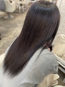 ブリーチ毛ですっかり色が抜けてしまったので、がっつり色を入れてブルーグレーにしたいとのことで、