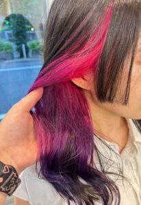 今回は18レベルの髪に、塩基性のカラーで発色のいいカラーをさせて頂きました☆
