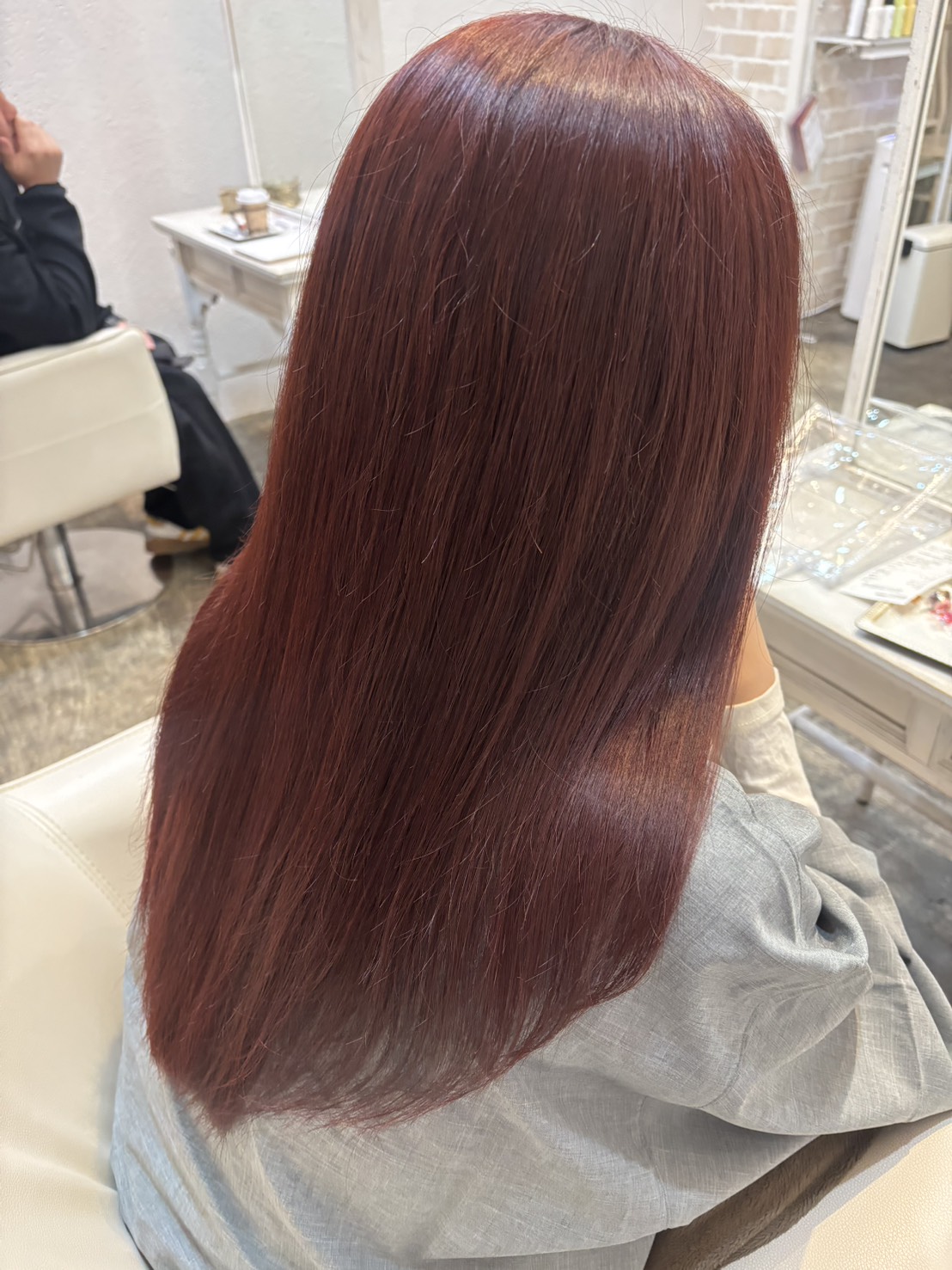 髪質改善も相まってツヤツヤの髪に仕上げております!