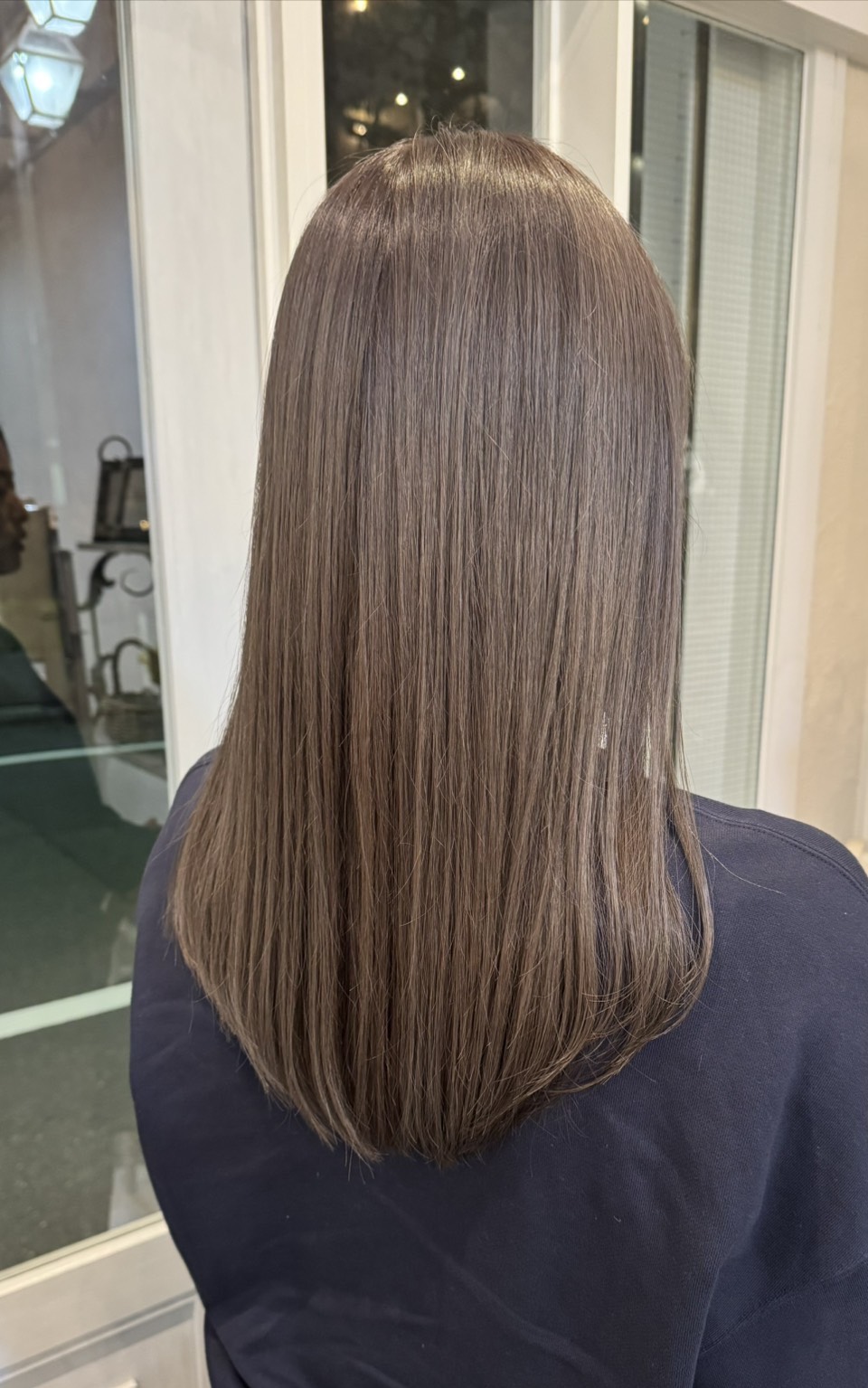 今回はベースが15レベルくらいまであがっている方のリタッチダブルカラーをして、全体は9トーンのグレージュカラーをさせて頂きました!