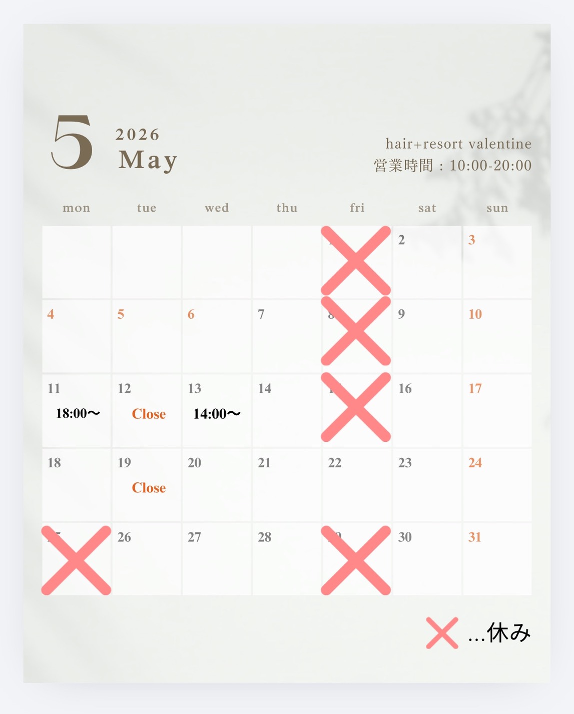 5月まだ空きございますので、ご予約お待ちしております☆