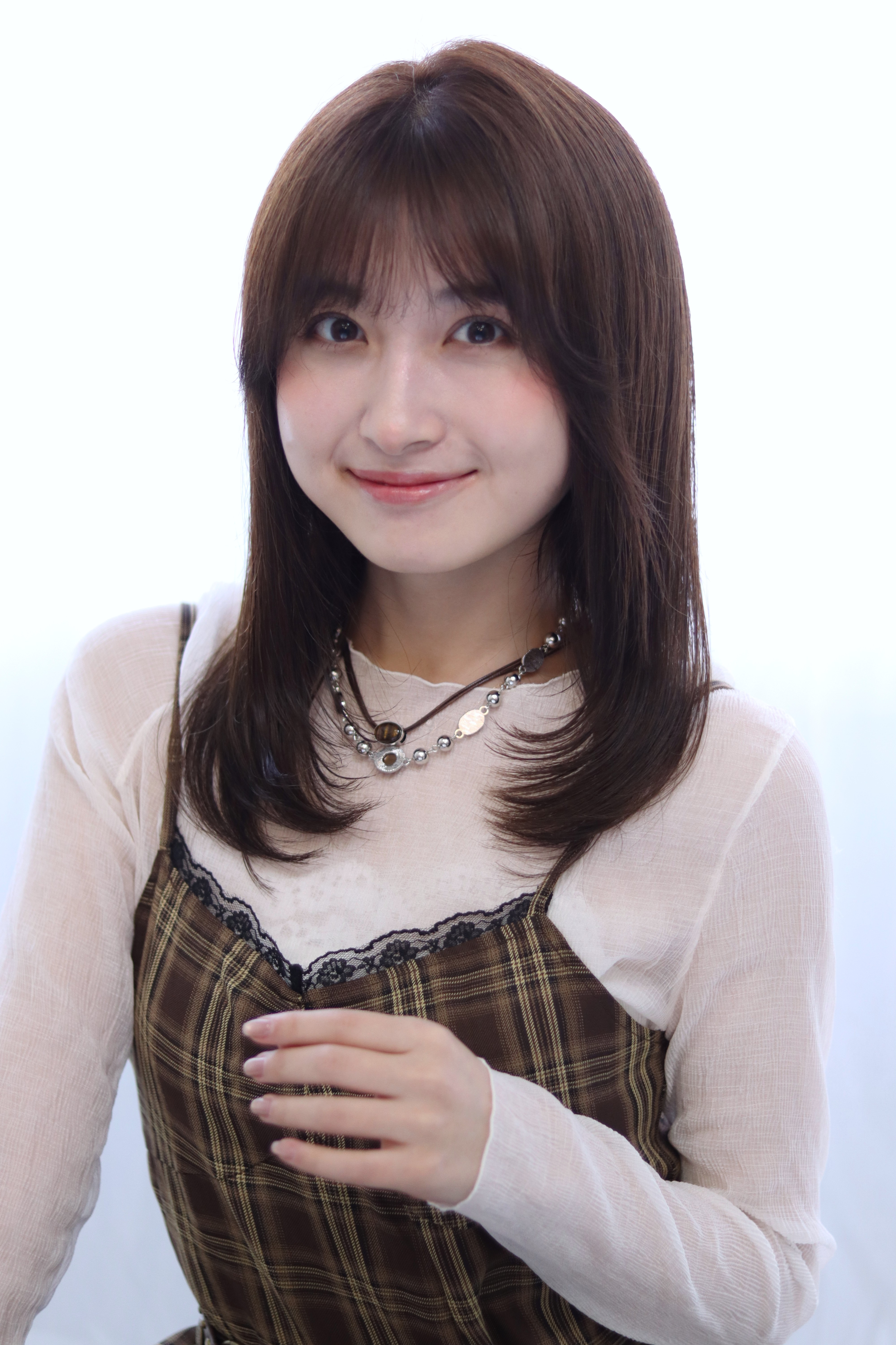 セミロングのレイヤーカットワンカールで可愛く仕上げられます♪