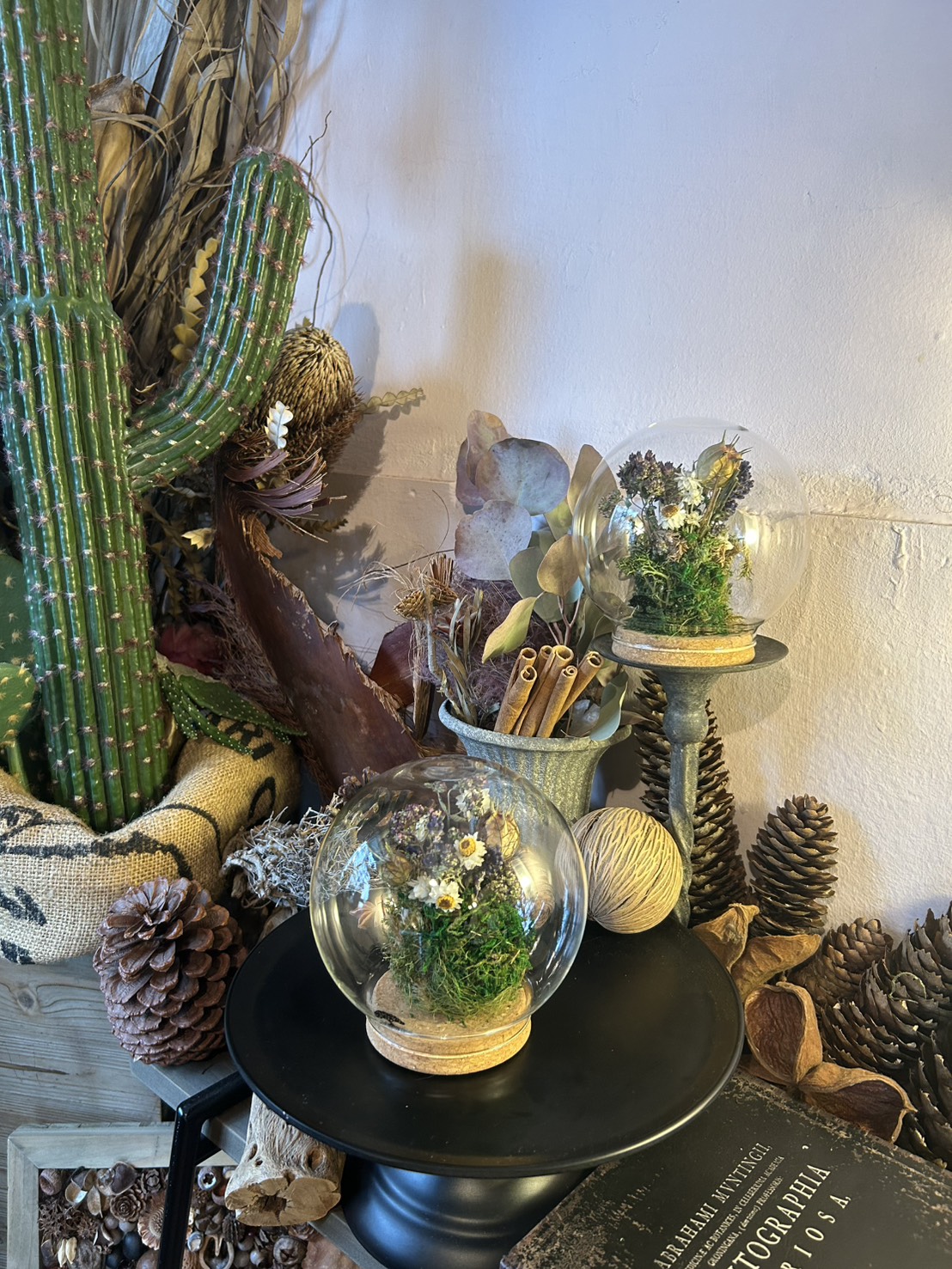 先日熱海でドライフラワーとコケで可愛い置き物を作りました^^