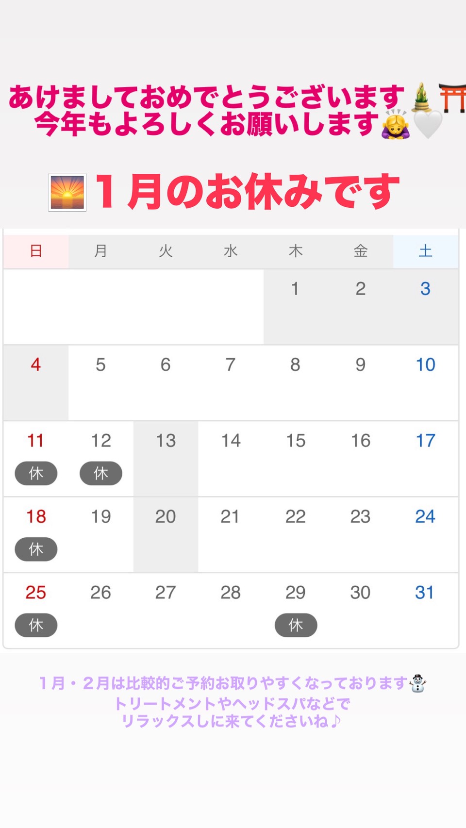 1月・2月は比較的ご予約に余裕がございます^ ^