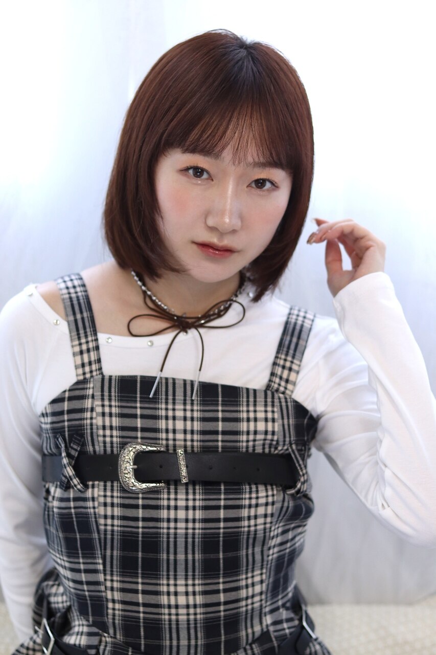 ブリーチなし透明感カラー/レイヤーボブ/似合わせ前髪